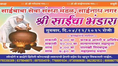 बोईसर :- साई बाबा सेवा संस्था मंडळ, साईनाथ नगर यांच्या वतीने दि. ४ डिसेंबर २०२५ रोजी श्री साईंच्या भंडाऱ्याचे दिव्य…