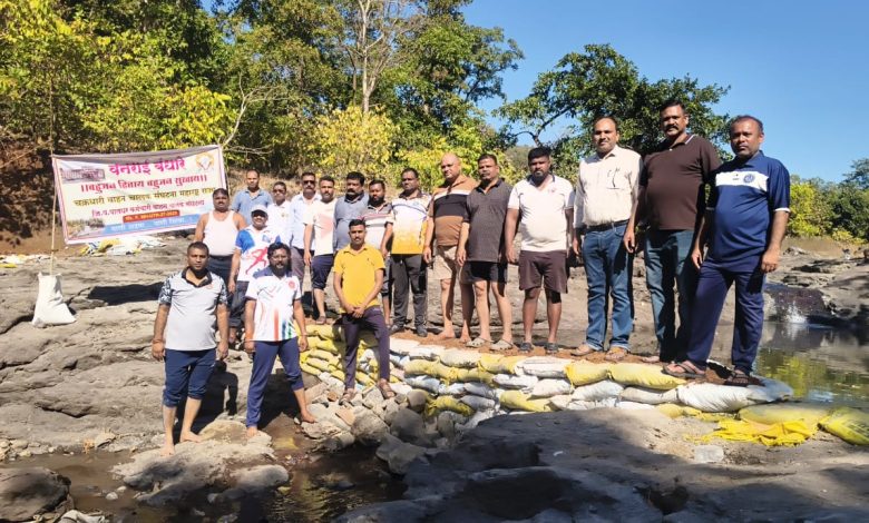 पालघर वाहन चालक संघटनेतर्फे वाडाखडकोना येथे वनराई बंधाऱ्यांची उभारणी