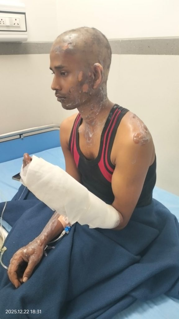 या दुर्घटनेत रवी शंकर पटेल (वय ३२) हा कामगार गंभीर जखमी झाला आहे. तिसरी प्लास्टिक बॅग रिऍक्टरमध्ये टाकत असतानाच अचानक आग लागल्याने त्याचे दोन्ही हात, खांदे, मान, एका बाजूचा कान व तोंड गंभीररीत्या भाजले गेले आहेत.
