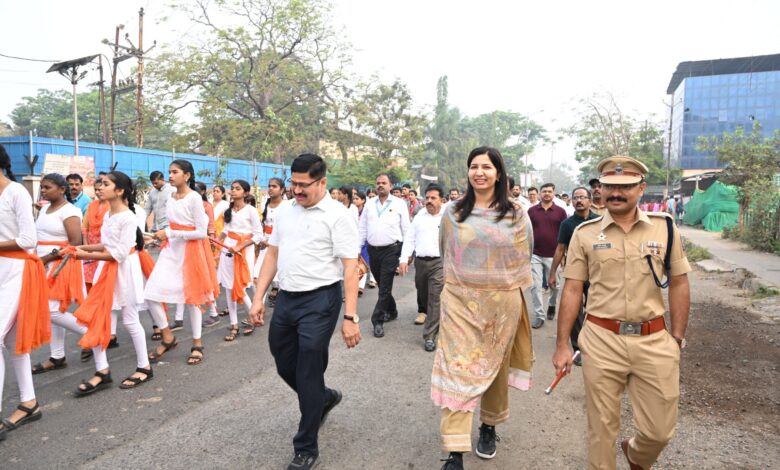 सकाळी नेमक्या ७ वाजता सुरू झालेल्या या पदयात्रेला जिल्हाधिकारी डॉ. इंदु राणी जाखड यांच्या अध्यक्षतेखाली प्रारंभ झाला. यावेळी जिल्हा परिषद मुख्य कार्यकारी अधिकारी मनोज रानडे, पोलीस अधीक्षक यतिश देशमुख, निवासी उपजिल्हाधिकारी सुभाष भागडे, तहसिलदार रमेश शेंडगे, जिल्हा क्रीडा अधिकारी सुहास व्हनमाने यांच्यासह विविध विभागांचे अधिकारी, कर्मचारी आणि लोकप्रतिनिधी मोठ्या संख्येने उपस्थित होते.
